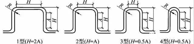 方形補(bǔ)償器通常是由四個(gè)90°無(wú)縫鋼管煨彎或機(jī)制彎頭構(gòu)成的U型補(bǔ)償器,依靠彎管的變形來(lái)補(bǔ)償管段的熱伸長(zhǎng)。方形補(bǔ)償器制造、安裝方便,不需要經(jīng)常維修,補(bǔ)償能力大,作用在固定點(diǎn)上的推力(即補(bǔ)償器的彈性力)較小,可用于各種壓力和溫度條件,缺點(diǎn)是補(bǔ)償器外形尺寸大,占地面積多。為了提高補(bǔ)償器的補(bǔ)償能力(或減少其位移量)常采用預(yù)先冷拉的辦法,一般預(yù)拉伸量為保溫管道伸長(zhǎng)量的50%。在極限情況下,其補(bǔ)償能力可比無(wú)預(yù)拉時(shí)提高一倍。圖三是計(jì)算鋼制方形補(bǔ)償器的線算圖,圖四是方形補(bǔ)償器的類型圖。
